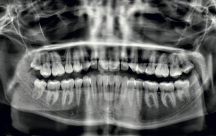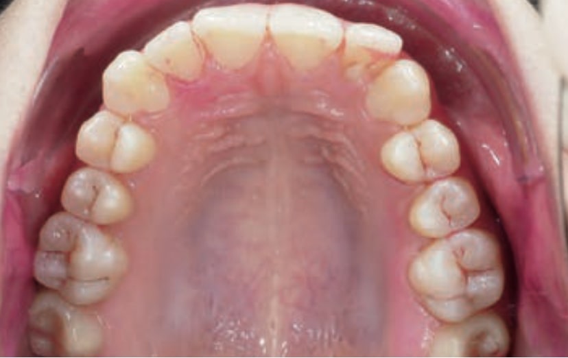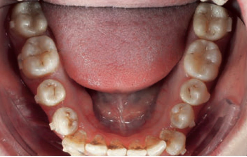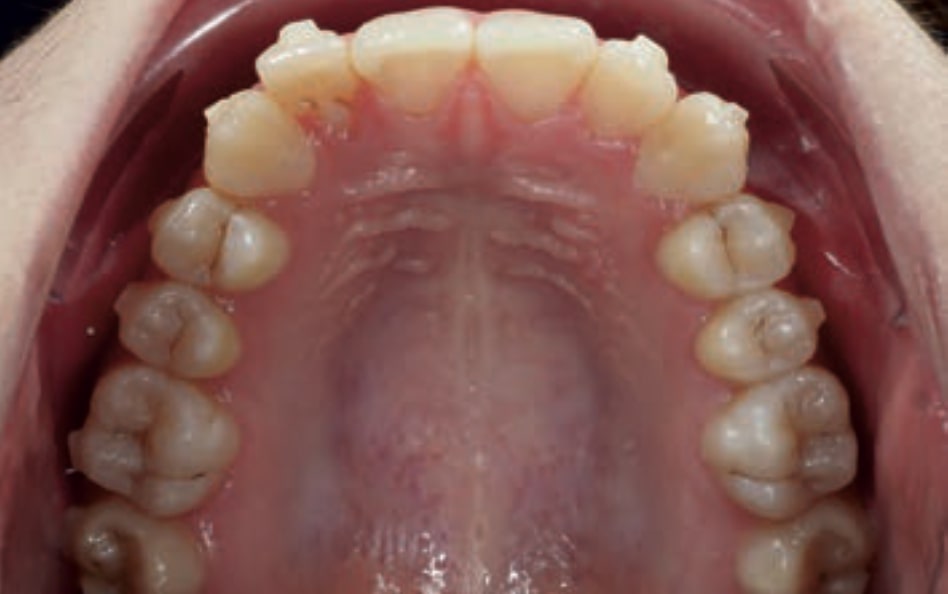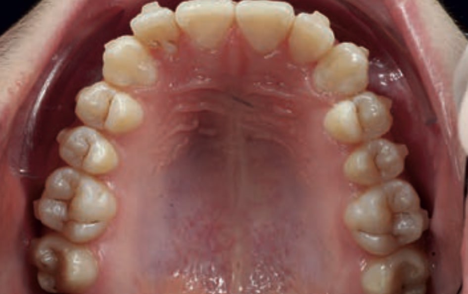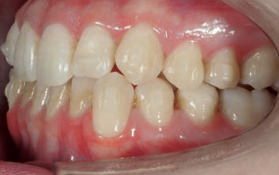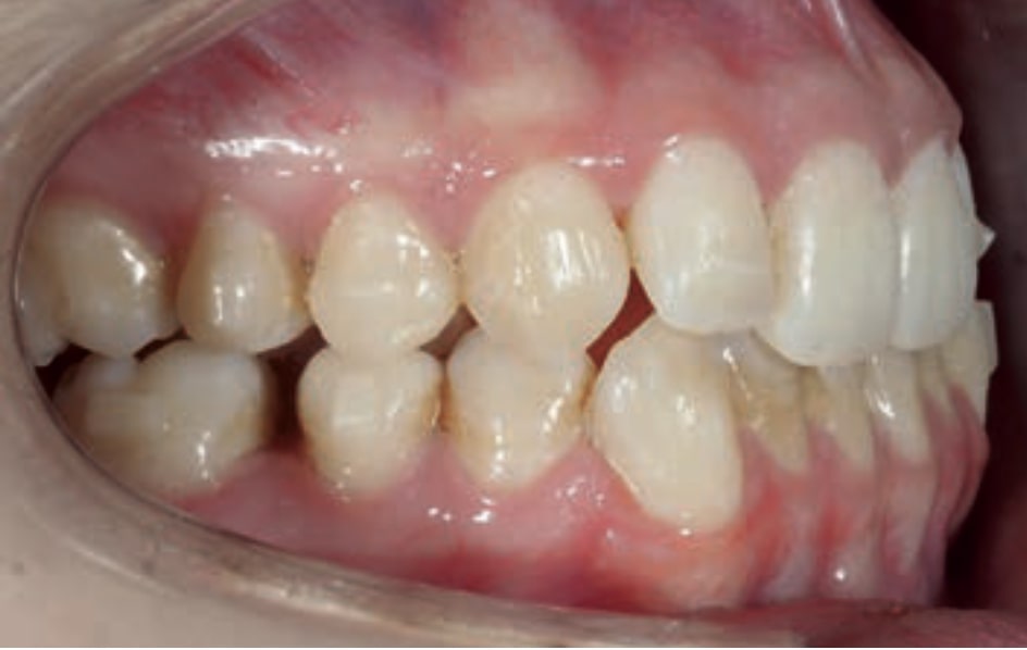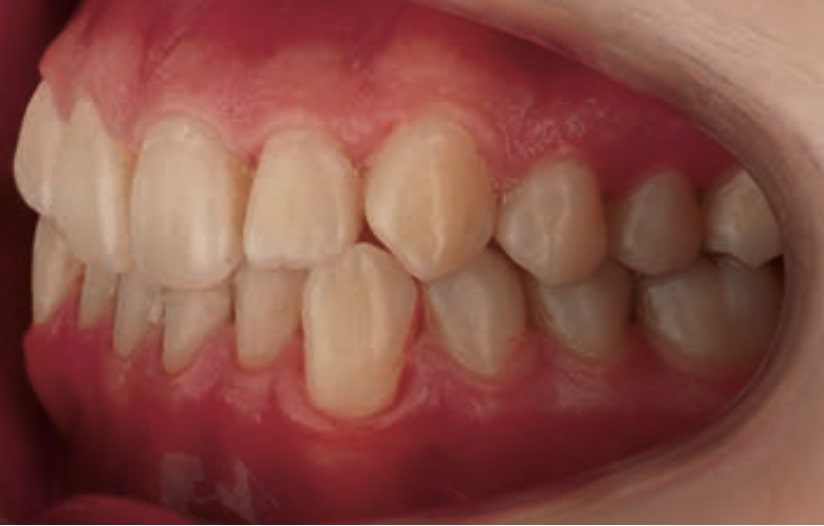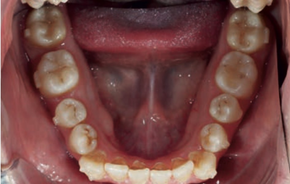 • Dental Class III, 2 mm deviation of the lower midline to the left. 33 and 43 out of the arch and the cortical bone.