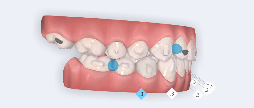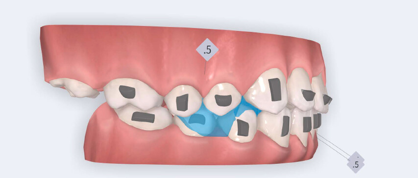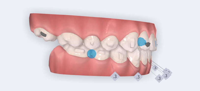 - Utilização de elásticos de Classe II com Angel Buttons durante a fase de refinamento, para reforçar a mecânica sagital, introduzidos na fase de alinhadores adicionais.